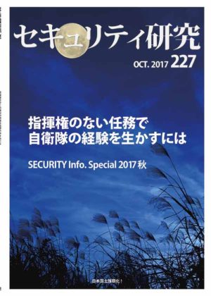 小誌227号は10/11から3日間 東京ビッグサイトで開催されるRISCON2017/SEECAT”17の企画号です。その227号のスペシャルインタビューは、「指揮権のない任務で自衛隊の経験を生かすには」と題し、元陸上自衛隊北部方面総監で東京都危機管理監 / 工学博士 田邉 揮司良さんへのインタビューです。特別企画「SECURITY Info. Special2017 秋」では有力19社の情報を掲載!。また、特別寄稿として、「Raspberry Piを使ったVisual IoT技術紹介」をNICTの村田様+クレアリンクテクノロジーの水原様より賜りました。そして、今回の一橋総合安全保障研究所からの寄稿は、「日本の財政 –合理的視点から考える」と題し、研究理事の仲野様からいただきました。