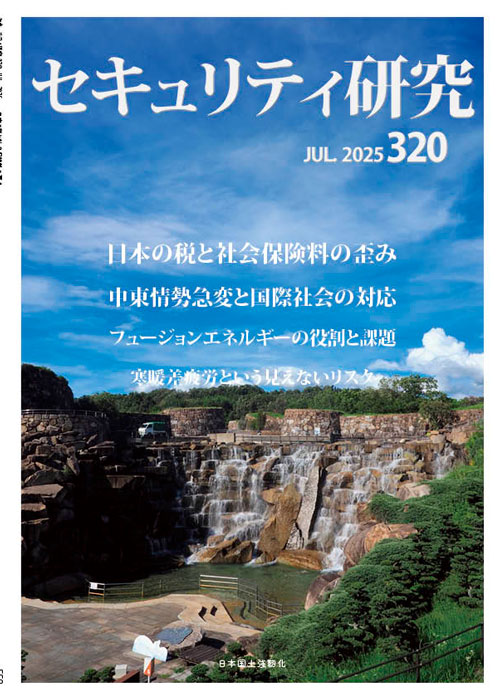 日本の税と社会保険料の歪み (仲野 凛) / 中東情勢急変と国際社会の対応 (久保田ようじ) / 対ドローン戦略における音響検知システム②(北野誠智) / エネルギー安全保障におけるフュージョンエネルギーの役割と課題①(山田健太朗) / 寒暖差疲労という見えないリスク① (飯田匠海) / 映像解析技術の研究①(セキュリティ人材養成センター®) / 予測困難な世界情勢がもたらす心理的影響 (住谷 健) / SECURITY Info. 有力企業13 社 / 他