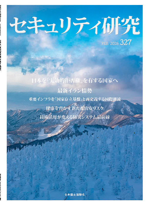 日本を「実効的拒否権」を有する国家へ (鈴木壮治) / 最新イラン情勢 ―対米関係の緊張と中東・南米エネルギー戦略― (久保田ようじ) / 技術活用が変える防災システム最前線 (北野誠智) / 重要インフラを「国家存立基盤」と再定義する国際潮流(山田健太朗) / 健康を脅かす新たな治安リスクー欧州委員会が示した違法薬物対策の戦略とは―(飯田匠海) / 2026年1月の国際情勢と我々の生活への影響 (住谷 健) / SECURITY Info. 有力企業11社 / 他