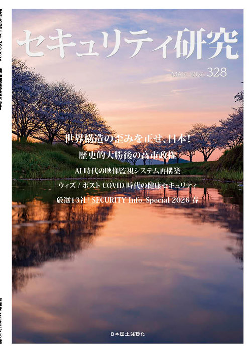 世界構造の歪みを正せ、日本! (鈴木壮治) / 歴史的大勝後の高市政権 ― 対中抑止・経済安全保障・同盟再設計の戦略的課題 (久保田ようじ) / 監視カメラからデータ基盤へ ― AI 時代の映像監視システム再構築 (セキュリティ人材養成センター 事務局) / ウィズ/ ポストCOVID 時代の健康セキュリティ ― 世界は次の危機への備えをどう進めているか (飯田匠海) / セキュリティショー2026と国内・国際情勢 (住谷 健) / 厳選13 社! SECURITY Info. Special 2026 春 / 他
