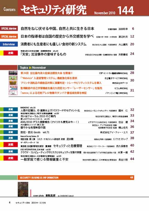 11月号 (no.144) 『然をねじ伏せる中国、自然と共に生きる日本』 [参議院議員 浜田和幸 氏]By 事務局 / 2010/10/25 自然をねじ伏せる中国、自然と共に生きる日本[参議院議員 浜田和幸 氏]、日本の指導者は自国の歴史から外交感覚を学べ[拓殖大学学長 渡辺利夫 氏]